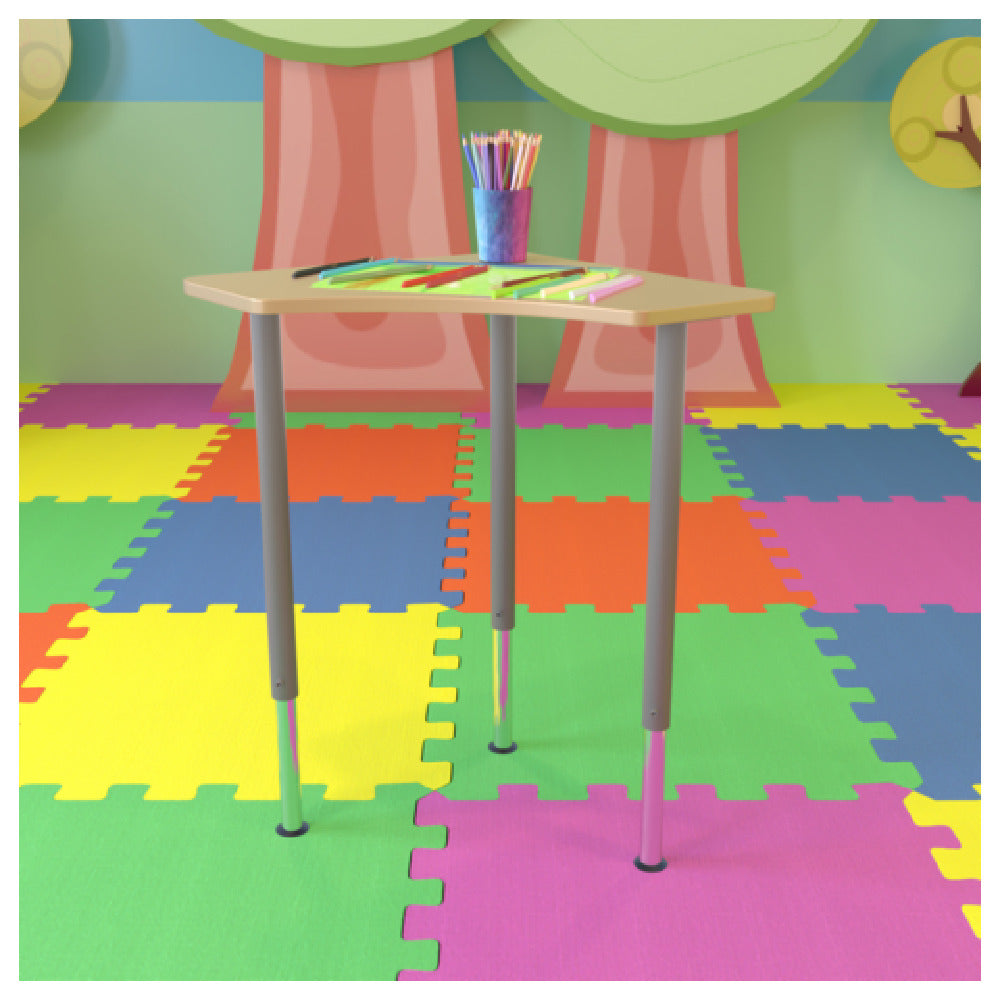 The Billie Triangular Student Desk offers quick adjustability for ergonomic comfort, durable 3/4" thermal fused laminate surfaces, and a powder-coated frame for enhanced durability. Its floor glides protect flooring surfaces, while the open triangular design maximizes workspace efficiency for educational and training applications.