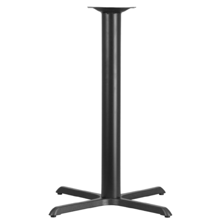 The Flash Furniture XU-T3333-BAR-GG Table Base is a professional-grade, cast iron table support designed for commercial foodservice environments. Measuring 33" by 33" with a height of 42", this bar height base features a sturdy X-base design, a 4" diameter column, and a pre-welded top plate, making it suitable for supporting round or square table tops ranging from 24" to 36". Crafted with a durable powder-coated finish, it offers resistance to daily wear and tear, ensuring long-term stability in high-traffic hospitality settings. This table base provides the precise technical specifications and robustness required for restaurant, bar, or café seating arrangements, optimized for commercial use and heavy-duty performance.