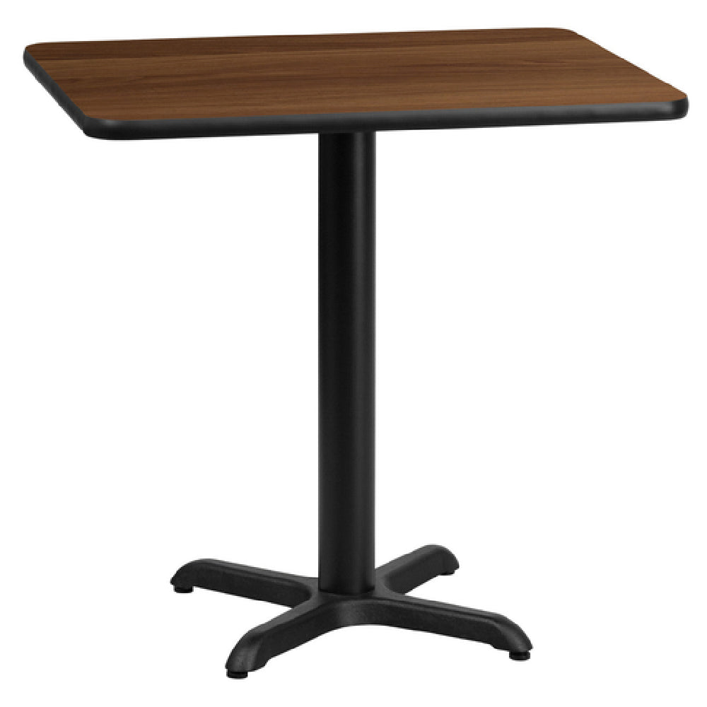 Flash Furniture, XU-WALTB-2430-T2222-GG, Table, 30"W x 24"D x 31-1/8"H, dining height, rectangular, 1-1/8" thick, MDF with melamine core, walnut laminate finish, black PVC T-mold edge, pre-welded top plate, 22" x 22" x-base, 3" dia. cast iron column with black powder coated finish, designed for commercial use (assembly required) (shipped in 3 boxes) (in stock items usually ship within 24 hours)