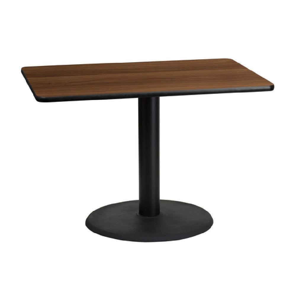 The Flash Furniture XU-WALTB-3042-TR24-GG table offers a robust construction with MDF and melamine core for long-lasting resistance to wear in busy foodservice operations. Its 42"W x 30"D profile suits varied seating arrangements, and the pedestal base provides optimal legroom and stability. Designed with ease of maintenance, the walnut laminate surface cleans quickly, while the black PVC edge protects against impacts. Ideal for dining areas, banquet halls, and café environments, this table supports moderate throughput with a proven durability to withstand routine commercial use.