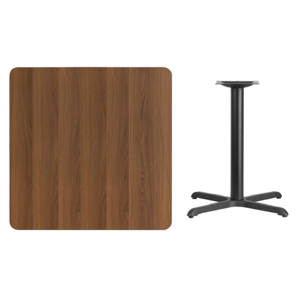 Flash Furniture, XU-WALTB-3636-T3030-GG, Table, 36"W x 36"D x 31-1/8"H, dining height, square, 1-1/8" thick, MDF with melamine core, walnut laminate finish, black PVC T-mold edge, pre-welded top plate, 30" x 30" x-base, 3" dia. cast iron column with black powder coated finish, designed for commercial use (assembly required) (shipped in 3 boxes) (in stock items usually ship within 24 hours)