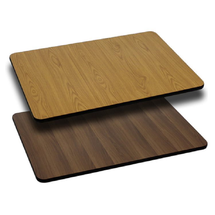 The Flash Furniture XU-WNT-2442-GG Table Top is a functional and durable rectangular laminate surface designed for commercial foodservice environments. Measuring 42 inches in width by 24 inches in depth and 1-1/8 inches thick, this high-impact melamine core tabletop offers a reliable work surface. Its reversible feature provides natural laminate on one side and walnut laminate on the other, allowing versatile aesthetic options for different tabletop configurations, making it suitable for restaurants, cafes, and catering operations seeking resilient, easy-to-maintain table surfaces.