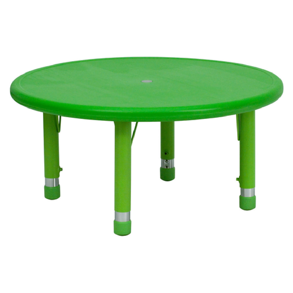 Flash Furniture, YU-YCX-007-2-ROUND-TBL-GREEN-GG, Preschool Activity Table, 33" dia. x 14-1/2" to 23-3/4" adjustable height, round, 220 lb. static load capacity, for school chairs 6-1/2" to 14"H, seats up to 4 children, plastic top, safety rounded corners, extending steel legs, green (assembly required) (shipped in 2 boxes) (in stock items usually ship within 24 hours)