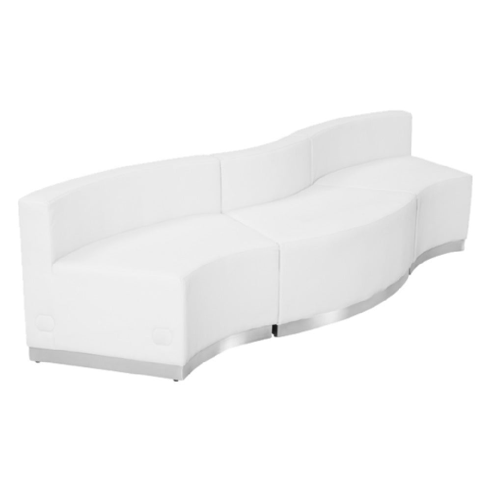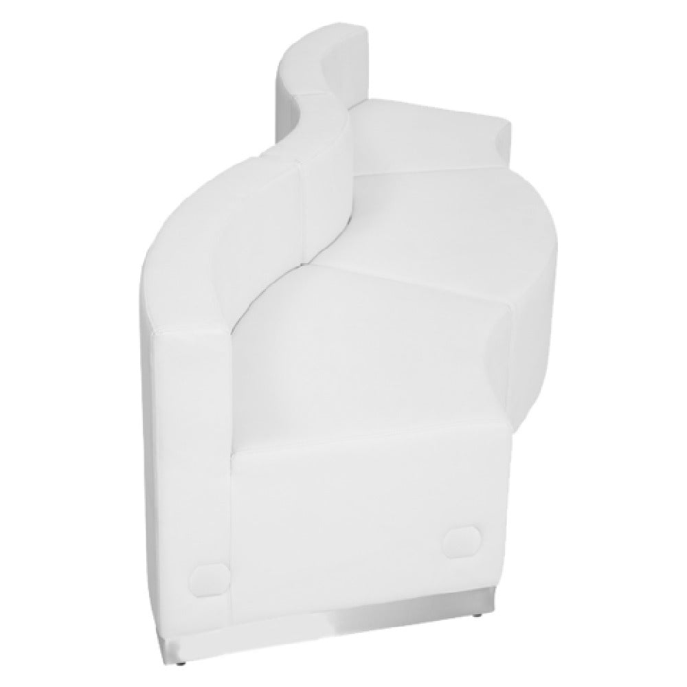 The Flash Furniture ZB-803-720-SET-WH-GG Hercules Alon Series Reception Configuration is a modular indoor sofa seating system designed for commercial waiting areas, lobbies, and reception zones. Constructed with durable LeatherSoft upholstery and a brushed stainless steel base, this setup combines comfort with resilience in high-traffic environments. Its overall dimensions measure 101 inches wide with adjustable depth from 25-1/4 inches to 27-1/2 inches, and a height of 27 inches, making it suitable for modern reception spaces requiring a stylish, functional seating arrangement. This configuration uniquely offers configurable convex and concave chairs, connected via locking bolts for seamless layout customization, contributing to efficient space utilization in institutional or hospitality settings.