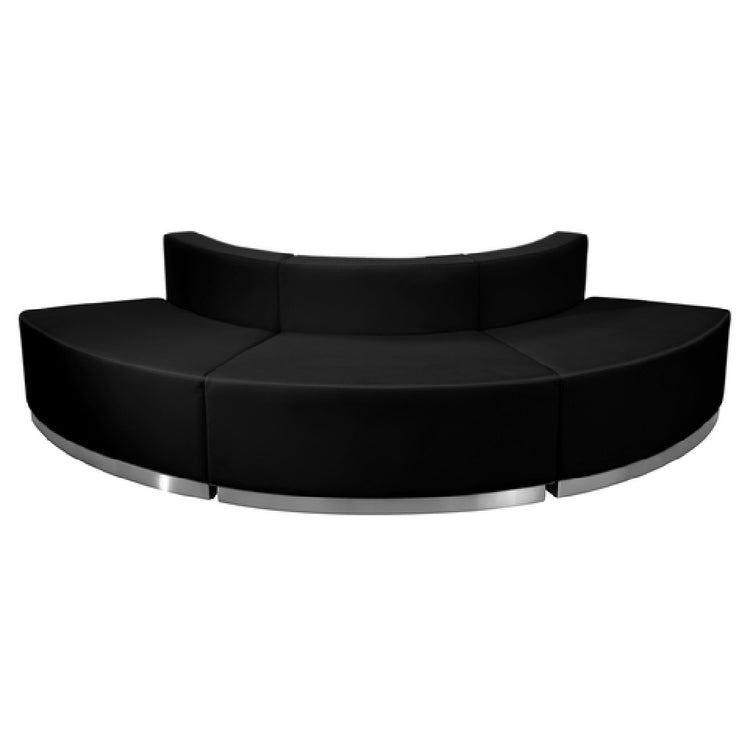 Flash Furniture, ZB-803-800-SET-BK-GG, Hercules Alon Series Reception Configuration, 97"W x 25-1/4" to 42"D x 27"H overall dimensions, includes: (3) 41-1/2" to 21-1/2"W x 25-1/4"D x 27"H convex chairs, modular, LeatherSoft upholstery, taut seat and back, line stitching throughout, CA117 fire retardant foam, locking bolt connects chairs, brushed stainless steel base, adjustable floor glides, black (assembly required) (shipped in 3 boxes) (in stock items usually ship within 24 hours)