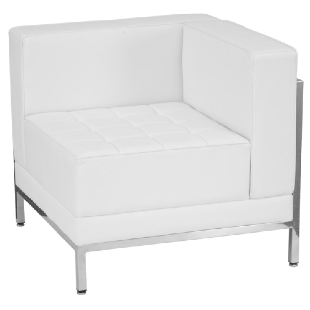 Flash Furniture, ZB-IMAG-RIGHT-CORNER-WH-GG, Hercules Imagination Series Right Corner Chair, modular, LeatherSoft upholstery, straight arm design, right arm facing, smooth back and tufted seat, fixed seat and back cushion, CA117 fire retardant foam, exposed stainless steel accent bar, integrated stainless steel legs, white (assembly required) (in stock items usually ship within 24 hours)