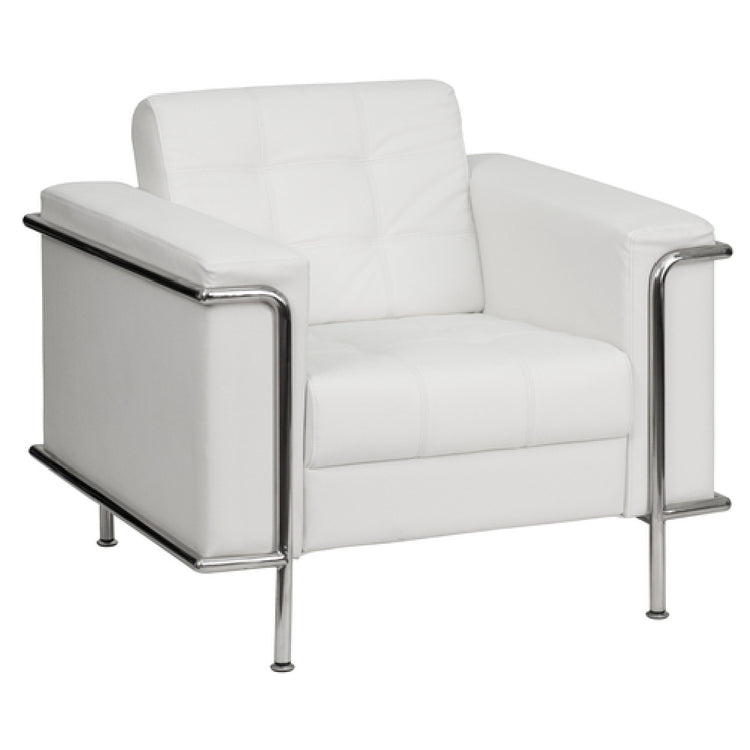 Flash Furniture ZB-LESLEY-8090-CHAIR-WH-GG 36 Inch Upholstered Chair with Stainless Steel White LeatherSoft