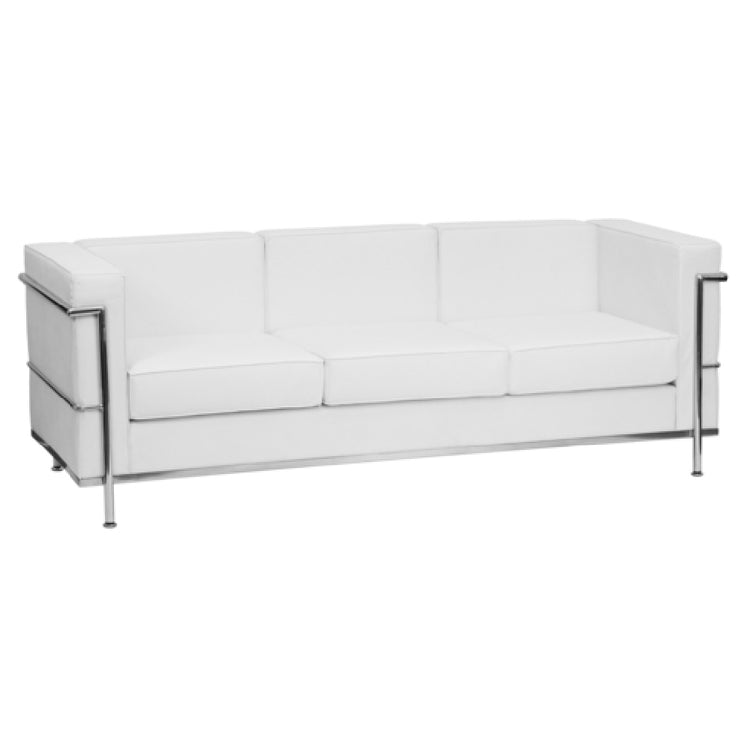 Constructed with premium LeatherSoft and stainless steel details, the Flash Furniture ZB-REGAL-810-3-SOFA-WH-GG provides reliable, comfortable seating for moderate-use hospitality spaces such as lobby lounges or private dining areas. Its sturdy build and easy maintenance support sustained operation in busy foodservice settings, making it ideal for upscale waiting zones and lounge applications.