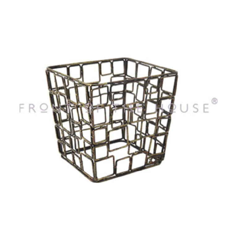 FOH®, BHO051GOI21, Promotional pricing may be available! Contact your FOH® sales representative for details! Wireware™ Coppered Link Housing, 6-1/4" x 5-1/2" x 6", square, small, linked design, hand-fused, food-safe painted iron, copper finish (Packed By: 4 Each Per Case)
