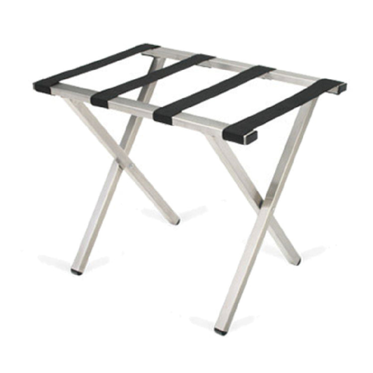 This luggage rack is optimized for commercial environments requiring reliable luggage storage and easy maintenance. Its combination of rectangular steel tubing and poly straps provides enhanced durability and security for guests' or employees' belongings. Designed for high-traffic areas, it supports consistent load-bearing capacity, with a brushed stainless steel finish that resists corrosion and simplifies cleaning. The rack’s compact profile fits well in varied hospitality or transport workflows, facilitating swift support for luggage management during peak periods, and its sturdy construction ensures longevity in demanding operational conditions.