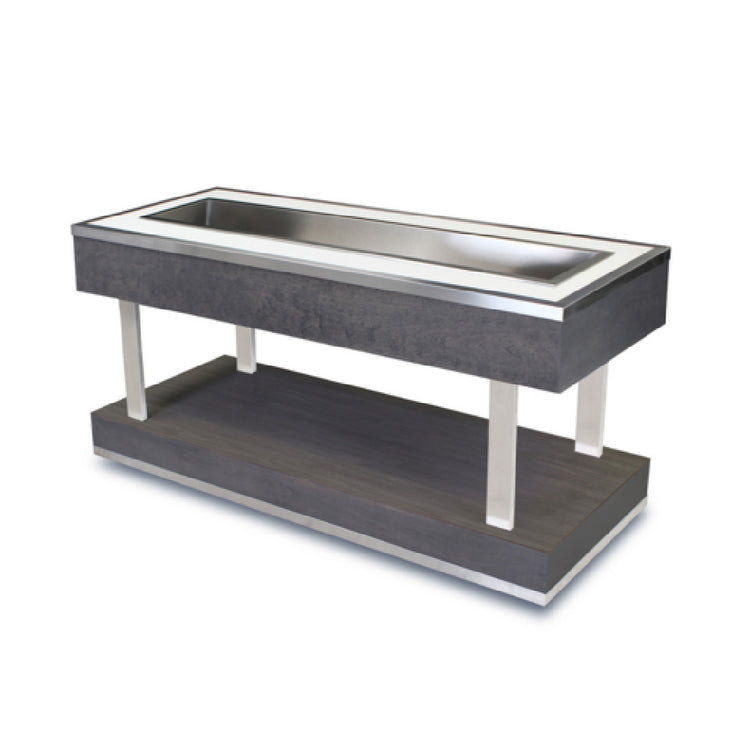 This raw bar station caters to commercial foodservice applications requiring durable, easy-to-clean display surfaces and flexible mobility. Its open design allows efficient access for staff, while the Avonite countertop withstands frequent cleaning with compatible sanitizers. Constructed with stainless steel support legs, it ensures longevity under heavy use, and the swivel casters enable quick repositioning in dynamic environments. Suitable for seafood counters, cold food stations, or retail display areas, the unit supports moderate throughput workflows with its spacious layout and resilient materials.