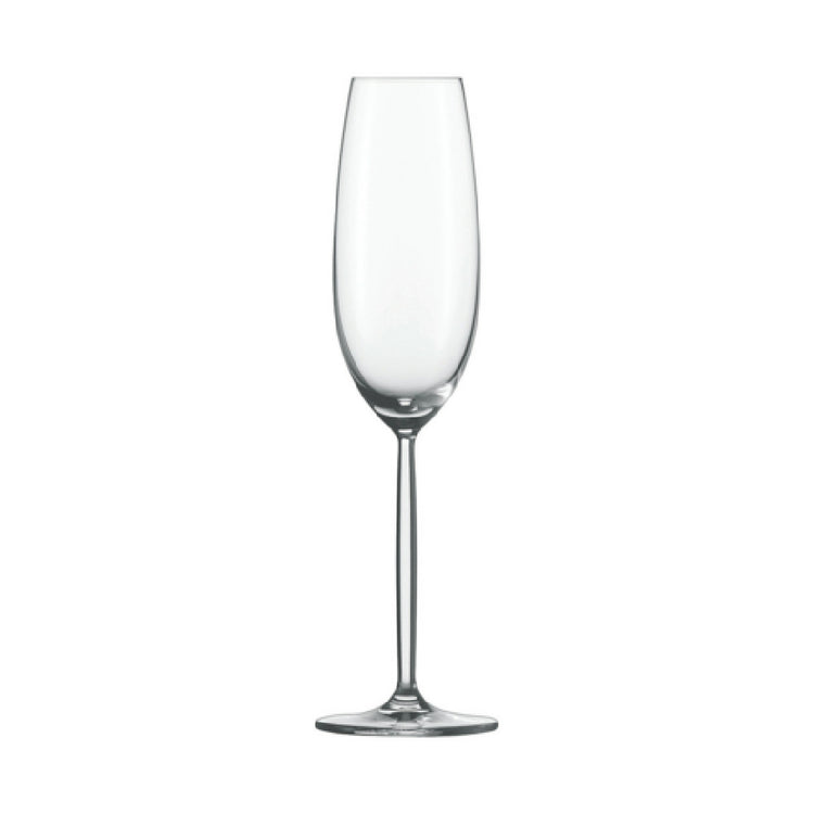 The Fortessa 0006.104100 Schott Zwiesel Diva Flute Champagne Glass (Shape #7) 7.4 Oz. is a high-quality crystal glassware designed specifically for premium service in the hospitality and foodservice industries. Crafted by Fortessa Tableware Solutions using lead-free crystal glass, this flute features a 7.4-ounce capacity, rim-tempered construction, and a sheer rim for enhanced durability and elegant presentation. Its technical specifications include a height of 10 inches, a width and depth of 2.81 inches each, and an individual weight of 1.86 pounds, making it suitable for professional use where clarity and robustness are required for sparkling wine and champagne service. The dishwasher-safe design and rim tempering ensure longevity and ease of maintenance, catering to high-volume or moderate-volume hospitality settings seeking reliable glassware for upscale environments.