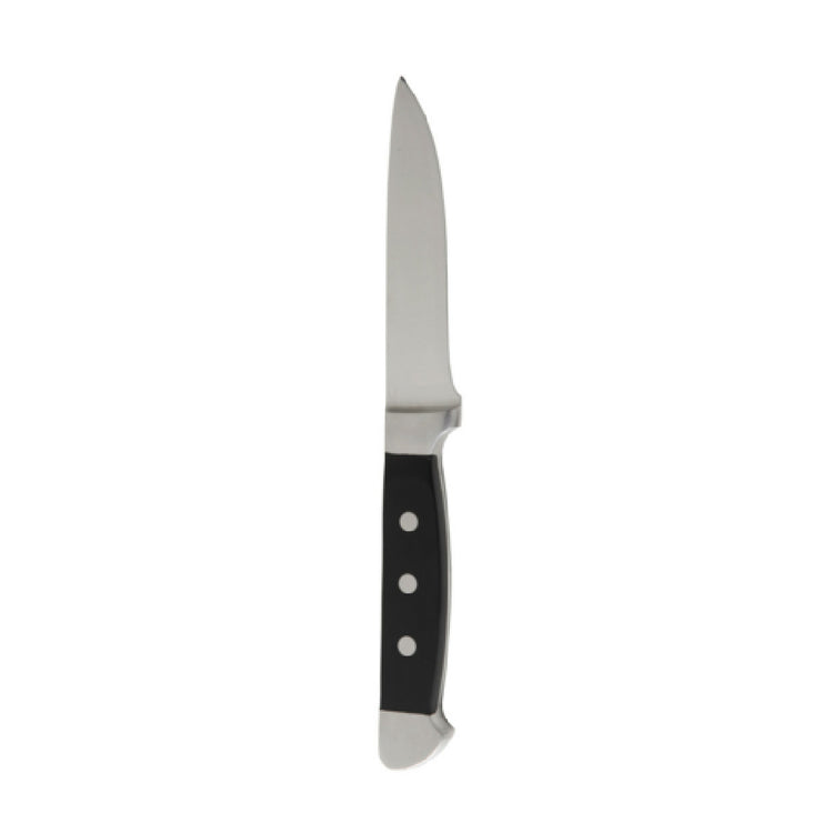 The Fortessa 1.5.STK.NS.270 Vaquero Steak Knife 10" (25cm) Non-serrated is a professional-grade cutlery tool designed for high-performance foodservice environments. Crafted from 18/10 stainless steel, this knife features a solid handle for durability and ergonomic comfort. Its non-serrated blade offers precise slicing capabilities, making it ideal for precision cutting in steakhouse, restaurant, and catering operations. The 25cm (10-inch) length balances control with efficiency, while dishwasher safety ensures ease of maintenance. Engineered for consistent performance, it caters to commercial kitchens requiring reliable and sharp cutlery for efficient workflow and presentation.