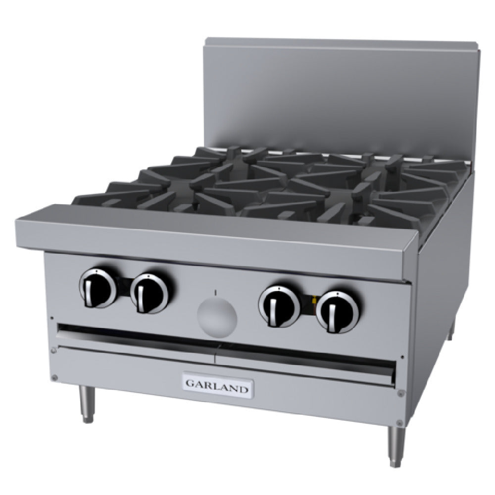 Garland, G24-4T_NAT, G Starfire Pro Series Restaurant Range, gas, 24", modular, (4) 33,000 BTU open burners, cast iron top & ring grates, stainless steel front, sides, plate rail, low profile back guard, 132,000 BTU, CSA Flame, CSA Star, cCSAus, NSF (Garland)