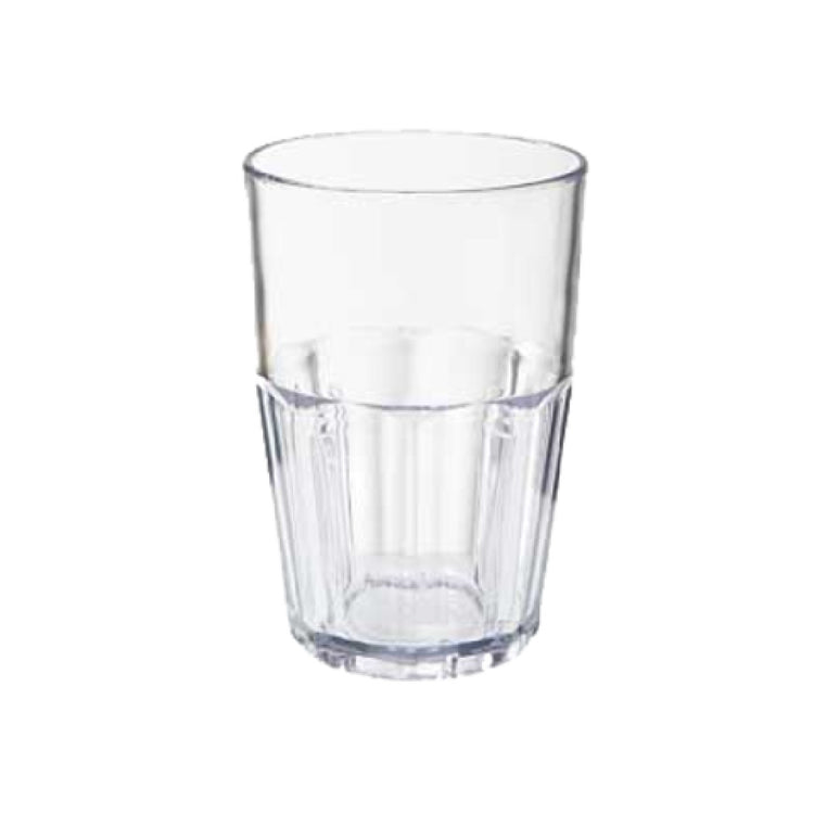 A commercial tumbler is a durable, food-grade drinking vessel designed for high-volume beverage service in hospitality, healthcare, or institutional foodservice settings. Constructed from impact-resistant plastics such as SAN, these tumblers often feature stackable designs for space efficiency. The GET Enterprises 9914-1-CL Bahama™ Double Rock Tumbler, with its 14 oz. capacity and BPA-free, NSF-approved SAN material, is ideal for beverage presentation in fast-paced environments. Used primarily in cafes, bars, or large kitchens, it facilitates quick, sanitary handling of drinks while supporting streamlined workflows and storage solutions.