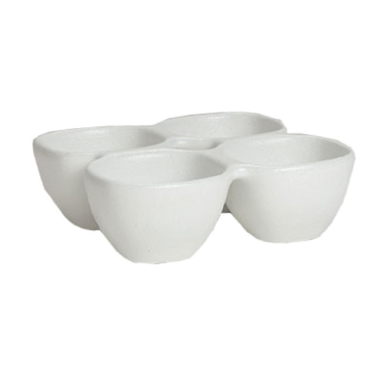 This four-division condiment bowl offers precise compartmentalization with a total capacity of 10 ounces, facilitating efficient condiment organization. Its cast aluminum construction provides exceptional durability against impact and wear, suitable for high-traffic commercial settings. The resin coating enhances ease of cleaning and resistance to food stains, while its 8.66" x 8.11" footprint allows seamless integration into existing service lines. Designed for countertop use without handles, it simplifies workflow for staff in fast-paced environments. The 3.15" depth ensures secure condiment containment, minimizing spillage during handling.