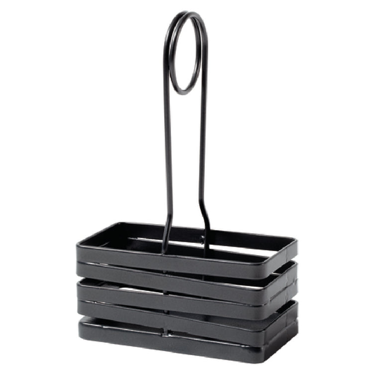 The GET Enterprises CAD-42-MG Clipper Mill Cyclone™ Salt/Pepper Caddy is a durable, metal wire condiment storage solution designed specifically for commercial foodservice applications. This rectangular caddy measures 4 inches in width, 2 inches in depth, and 6½ inches in height, featuring a powder-coated metal gray finish that resists corrosion and daily wear. Its single compartment setup and loop handle facilitate efficient organization and ease of transport within kitchen or dining station workflows, making it suitable for high-traffic settings such as cafes, buffet lines, and quick-service restaurants. With a robust metal construction, this caddy ensures long-term performance in demanding environments, while maintaining a compact footprint for versatile placement in busy commercial kitchens.