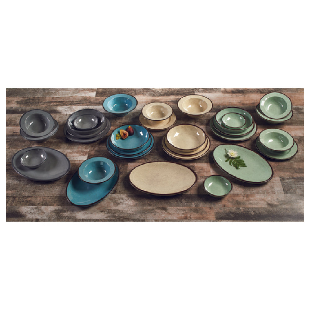 The GET Enterprises DB8M-CB Elite Global Solutions Bowl is a commercial-grade melamine dish designed for high-volume foodservice applications, including cafeterias, buffets, and casual dining establishments. This 18 oz. capacity bowl features an 8-inch diameter and stands 2-1/4 inches high, offering ample space for salads, pasta, cereals, or soups. Constructed from durable, BPA-free melamine, it resists breakage, chipping, staining, and scratching, ensuring long-lasting performance. Its crackled texture enhances visual appeal, while dishwasher safety simplifies sanitation. The bowl's design prioritizes practical use in busy kitchens, providing a stable and uniform serving surface for various food items while maintaining a sleek vintage California aesthetic suitable for diverse settings.