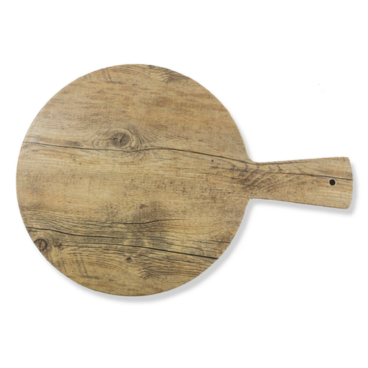 GET Enterprises M15RW-DW 15 Inch Round Melamine Serving Board with Handle Faux Driftwood Finish - 3/Case