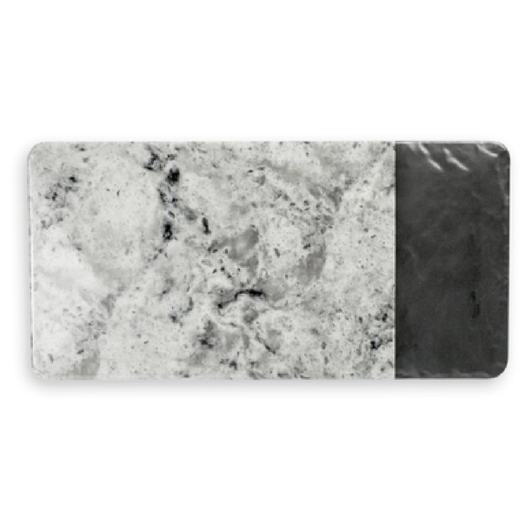 The GET Enterprises M714RCSM-BH Elite Global Solutions Melamine Serving Board is a durable, commercial-grade foodservice accessory designed for precise presentation in restaurant, catering, and hospitality environments. This rectangular melamine board measures 14-1/4 inches in length, 7 inches in width, and features a 1/2-inch thickness, offering a stable surface for serving a variety of culinary items. Its scratch, stain, chip, and break-resistant surface ensures longevity under frequent commercial use, while dishwasher-safe and BPA-free construction facilitates ease of maintenance. Featuring a black slate and faux horizon marble appearance, it enhances presentation aesthetics with practical resilience suitable for high-volume foodservice operations.