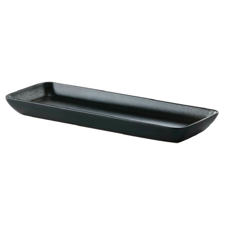 GET Enterprises PP1941497712 14 Inch Tray Rolled Edge Porcelain Black Reactive Glaze - 1 Dozen