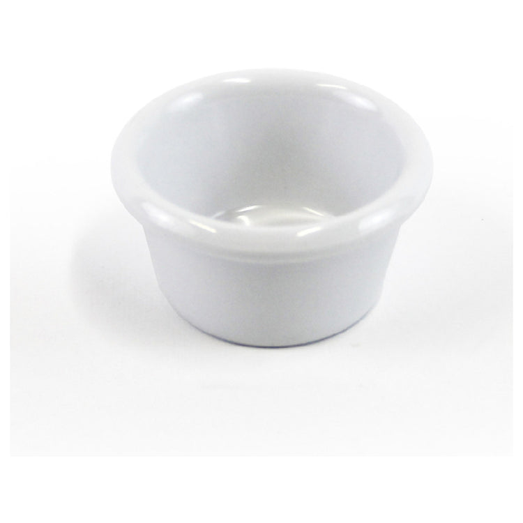 This ramekin is engineered for commercial foodservice use with features tailored to durability, ease of maintenance, and precise portion control. Made from high-quality melamine, it withstands rigorous handling while maintaining a polished white finish. The dish is dishwasher safe, promoting efficient cleaning routines. Its lightweight construction facilitates handling during busy kitchen operations and presentation. The 2 oz. capacity combined with 2-3/4" diameter and 1-1/2" height makes it ideal for sauces, garnishes, or small accoutrements, seamlessly integrating into plating workflows and tabletop service. Its stain, scratch, and chip resistance ensures long-term performance even in demanding environments.