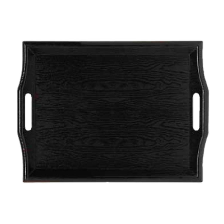 GET Enterprises RST-1815-1-BK 19 Inch Plastic Room Service Tray Black with Wood Look - 6/Case