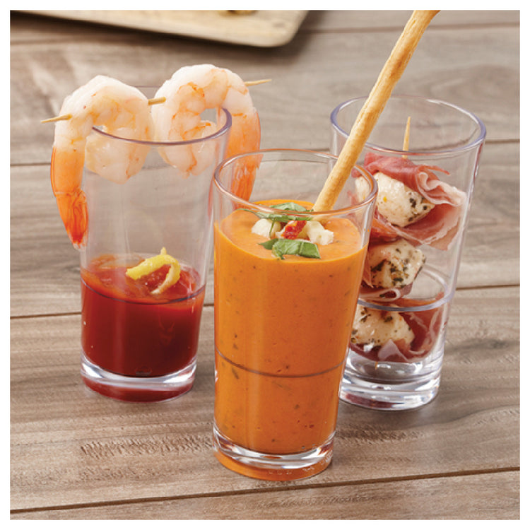 A commercial tasting glass is a specialized beverage container designed for sampling, tasting events, and bar service in high-volume foodservice operations. Made from durable, often impact-resistant materials, these glasses facilitate precise portioning and ease of cleaning. The GET Enterprises S-5-CL Revo™ Taster Glass, in particular, is a high-quality, plastic, juice-style tasting glass ideal for use in restaurants, bars, and catering venues, providing reliable performance and minimal replacement needs for moderate throughput environments.