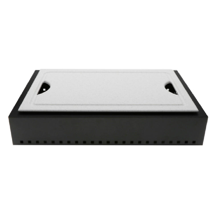 The GET Enterprises ST11209111EVK Strata Carving Station Kit is a commercial-grade foodservice equipment component designed to facilitate efficient meat and produce presentation in professional kitchen environments. This rectangular setup measures 24 inches in width, 16-1/2 inches in depth, and stands 6 inches high, providing a stable and spacious platform for carving and display tasks. The kit includes a durable display/carving board crafted from Corian, a galvanised steel deck unit, and a protective case for secure transportation and storage. Engineered for high-performance use in restaurants, buffets, and catering operations, this station enables streamlined workflows and enhanced product presentation for tabletop and countertop applications.