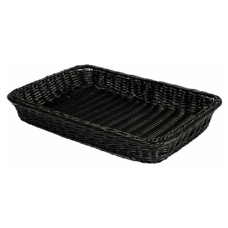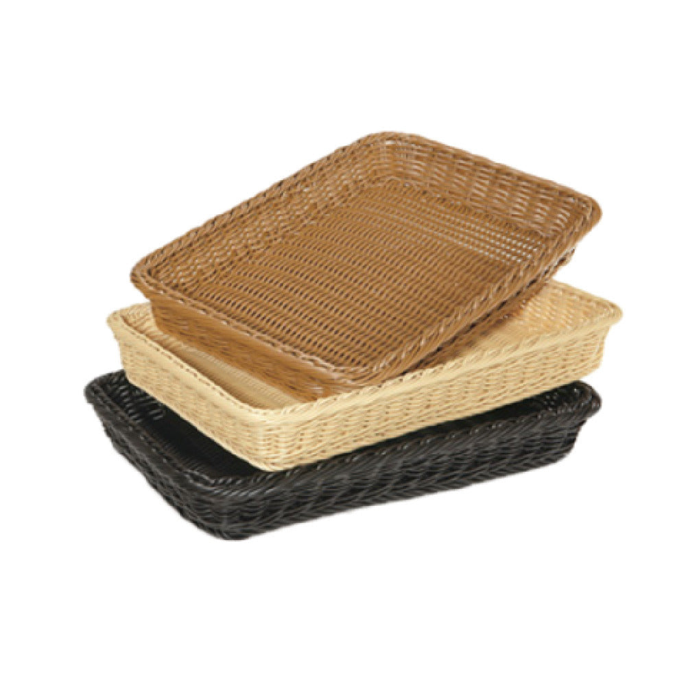 The WB-1509-BK Polyweave Basket features a polypropylene construction with a rectangular shape, measuring 18 inches in width, 12-1/4 inches in depth, and 2-1/2 inches in height. Weighing approximately 14 pounds, it offers robust durability and stability for countertop or shelving use. The basket’s BPA-free composition ensures food safety and compliance, while dishwasher compatibility supports fast, thorough cleaning. Its black finish provides a professional appearance suitable for various foodservice settings. The basket is designed to withstand typical operating temperatures and handling environments, making it a reliable component of commercial kitchen workflows.