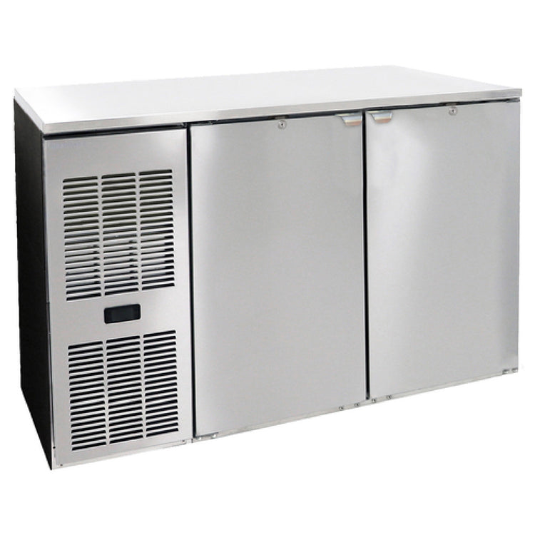 The Glastender C1FL52-UC Cooler One Zone Front Serviced is a commercial-grade undercounter refrigeration unit designed for efficient food storage in professional foodservice environments. This 52-inch wide, two-section refrigerator features self-contained refrigeration with side-mounted compressor technology, offering precise temperature control and reliable cooling performance. Its interior boasts a 9.4 cubic foot capacity, stainless steel construction, and LED lighting for clear visibility. The unit’s front venting facilitates built-in installation, while stainless steel pull tab handles with locks provide secure access. Equipped with two adjustable shelves per door and a durable stainless steel top, it caters to high-demand settings requiring streamlined operation and sanitation. The model’s technical design is optimized for easy maintenance, energy efficiency, and durability, making it a dedicated solution for restaurant, cafeteria, or catering operations requiring consistent cold storage with front servicing access.
