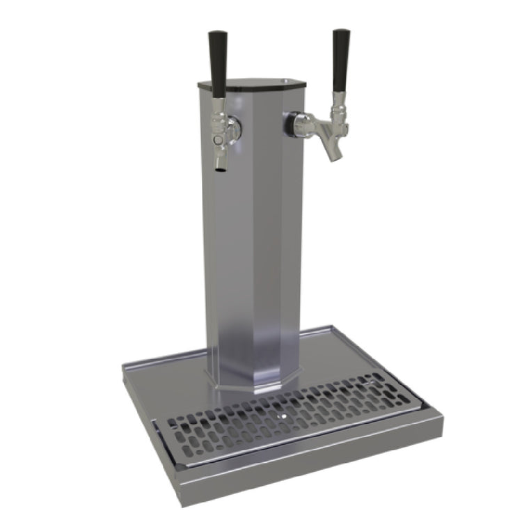 Glastender, Inc., CT-2-SS, Column Draft Dispensing Tower, countertop, (2) stainless steel faucets (handles not included), air-cooled, integral drain pan with removable perforated insert, all stainless steel construction, stainless steel finish