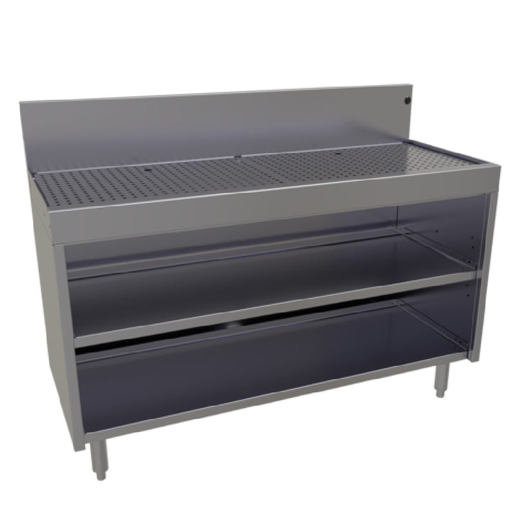 Glastender, Inc., DBCA-48-LD, Underbar Drainboard, open front cabinet base, 48"W x 19"D, drain pan with removable perforated insert, adjustable bottom & intermediate shelf, stainless steel construction, adjustable stainless steel bullet feet, ETL-Sanitation (NOTE: Made to order, not returnable)