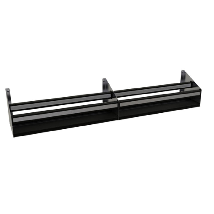 The Glastender DSR-55 Double Speed Rail 55"W Open Step-and-rail Design is a commercial-grade speed rail system engineered for efficient liquor organization in professional bar and beverage service environments. Crafted from durable stainless steel, this open step-and-rail configuration features a width of 55 inches and a height of 10.5 inches, providing optimal spatial allocation for liquor bottles. Its field-installed design includes ABS sound-deadening covers to reduce noise during operation and a clear snap-on liquor identification label cover for easy customization and identification. Suitable for high-volume bar setups, this model integrates seamlessly with standard keyhole mounting, ensuring stability and ease of installation in busy commercial kitchens and bar stations.