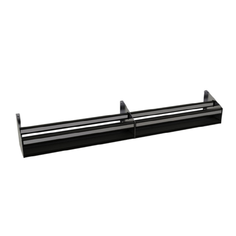 The Glastender DSR-77 Double Speed Rail is engineered with a stainless steel construction, measuring 77 inches in width, 10.5 inches in height, and 10 inches in depth. It features keyhole mounting, supporting installation on flat surfaces within busy bar or kitchen settings. The unit weighs 76 lbs, ensuring a sturdy presence during use. Its design incorporates corrosion-resistant materials suitable for frequent cleaning, with ETL sanitation approval affirming compliance with commercial hygiene standards. Power requirements are not applicable as it is a field-installed fixture, and it supports high-volume beverage organization. The open step-and-rail style allows for flexible liquor bottle placement, with ABS covers providing noise reduction during operation. Dimensions support installation in constrained spaces, making it adaptable for various commercial setups. Built to withstand typical operating temperatures and cleaning routines, the rail supports overhead or wall-mounted configurations for optimal workflow efficiency.