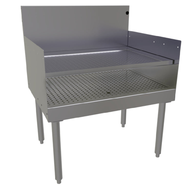 Glastender, Inc., RDBB-30, Recessed Drainboard, free standing, 30"W x 24"D (depth to match 24" deep units without speed rail), drip pan with perforated insert, lift-out perforated shelf for glassware, stainless steel construction, adjustable stainless steel bullet feet, ETL-Sanitation (NOTE: Made to order, not returnable)