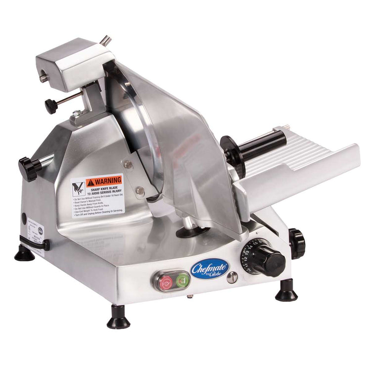 The Globe C10 (QUICK SHIP) Food Slicer, part of Middleby's comprehensive range of commercial kitchen equipment, is a manual operated slicing machine designed for high-volume foodservice environments. Featuring a robust 10-inch diameter blade constructed from durable materials, it achieves precise slice thicknesses from 0 to 9/16 inches. Its anodized aluminum body enhances corrosion resistance while supporting straightforward cleaning and maintenance. Equipped with a removable gravity feed chute, top-mounted sharpener, slice deflector, and knife cover, the C10 streamlines slicing workflows in deli, supermarket, and institutional kitchens. With a 1/4 HP belt-driven motor operating on 115V at 60Hz and a compact footprint of 20 inches wide, 24 inches deep, and 19 inches high, this model balances power and space efficiency. Its lightweight design at 39 pounds facilitates easy repositioning within busy food prep areas, making it a precise and reliable choice for demanding commercial operations.
