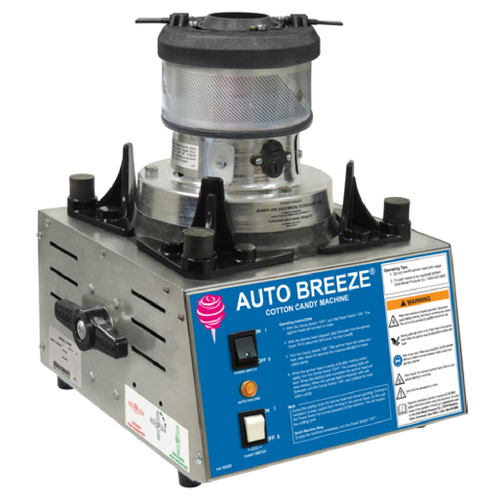 The Gold Medal 3052-00-001 Auto Breeze® Candy Floss Machine with EZ Kleen Take Apart Floss Head is a commercial cotton candy machine designed for high-efficiency, consistent operation in foodservice environments. Engineered for durability with a stainless steel cabinetry, it features a 5-inch tubular heating element and automatic heat control with auto cool-down, enabling up to 3-4 servings per minute. The unit’s easy disassembly with EZ Kleen take-apart floss head simplifies cleaning and maintenance, facilitating sanitation and operational uptime. Capable of supporting medium-volume retail or concession stand operations, it is suitable for indoor foodservice spaces that demand dependable, high-performance candy floss production. Key technical specifications include a 120V/60Hz single-phase power supply, 1440 watts output, and a aluminum floss pan designed for efficient heat transfer and cleaning.