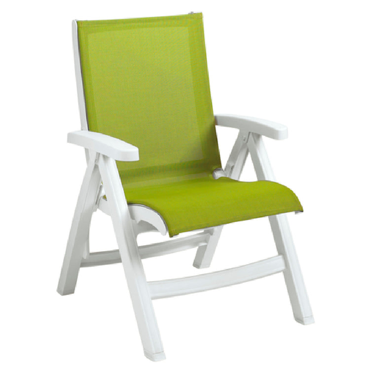 This stackable outdoor folding chair offers quick setup and compact storage for busy foodservice settings. Made with durable plastic and textile sling material, it withstands UV exposure and frequent cleaning. Its lightweight construction enhances mobility, ideal for seasonal or event-based outdoor dining. Designed for high-traffic environments, it supports efficient workflow and customer seating needs in hospitality venues.