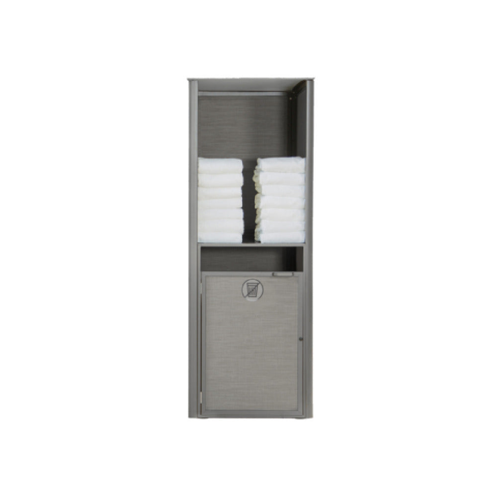 A commercial laundry housekeeping cabinet is a durable storage unit designed for organizing linens, towels, and cleaning supplies in high-traffic environments such as hospitality and healthcare. The Grosfillex UT170289 Sunset Towel Valet is installed in indoor and outdoor settings, featuring weather-resistant materials and a practical configuration of shelves and a laundry cart. It supports operational efficiency in environments with frequent linen turnover and high sanitation standards, especially suited for institutions requiring robust and low-maintenance solutions.