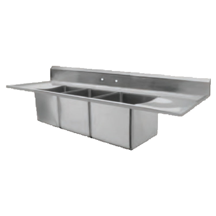 The GSW USA GSW USA SH12163DDN Sink Three Compartment Drop-in is a commercial-grade sink designed for professional foodservice environments requiring durable and efficient wash stations. Crafted from 18-gauge stainless steel, it features three spacious 16" wide x 12" front-to-back x 12" deep compartments, each with a 12" drainboard on the left and right for optimized workflow. The unit measures 60"W x 22"D x 14"H, suitable for installation in high-volume kitchens, bakeries, and prep areas. Its marine edge design ensures reliable installation and containment, while the included strainers with 3-5/8" diameter openings facilitate efficient drainage. Specifically engineered for heavy-duty use, this drop-in sink supports seamless integration into various commercial foodservice setups.