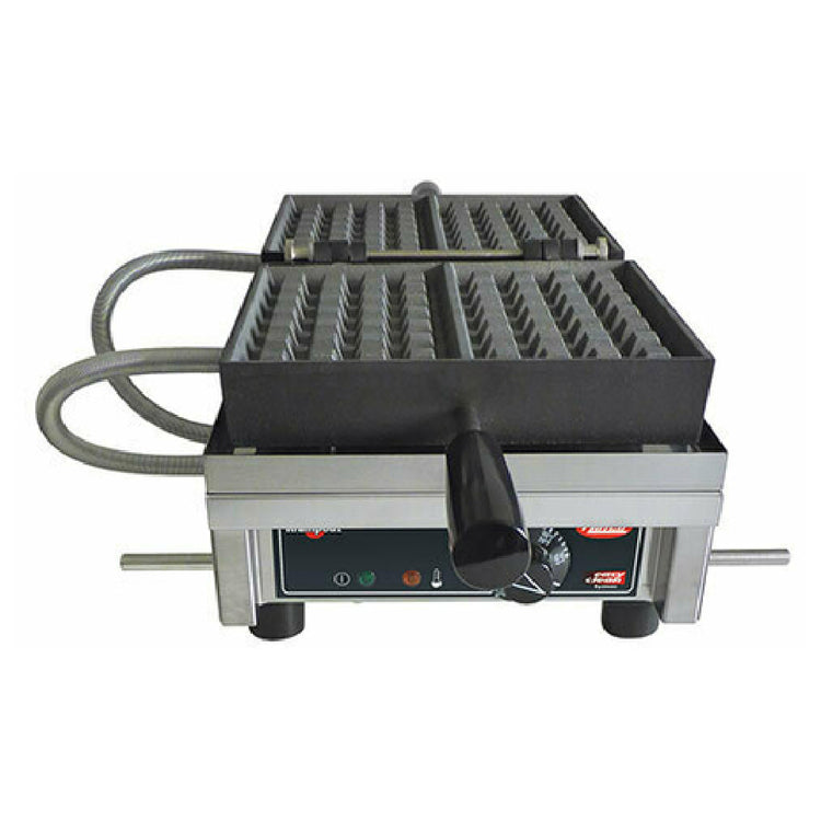 The Hatco KWM18-1LG47 Hatco®/Krampouz® Belgian Waffle Maker Single Electric is a commercial-grade food preparation appliance designed for precise and reliable waffle production. This model features a single, rectangular waffle grid with cast iron plates, capable of producing a 7-inch Liege waffle. Its rotation mechanism allows 180° movement, ensuring uniform cooking and consistent results. Built with a stainless steel frame and thermostatic controls, it offers adjustable temperature regulation from 120°F to 570°F, supporting various cooking parameters for mid-volume foodservice environments. Ideal for professional kitchens, bakeries, and catering operations, this waffle maker ensures durable construction and straightforward maintenance for seamless workflow integration. It is configured as a self-contained electric unit with precise control over thermal performance, suited for continuous operation in demanding culinary settings.