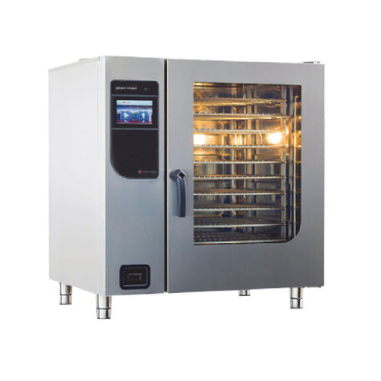 Henny Penny, FPG115.570.01, FlexFusion Platinum Combi-Steamer Oven, natural gas, crosswise racking for (10) Flexirack sized pans or 1/1 GN pans, Chef's Touch™ controls with AutoChef™ preprogrammed cooking recipes, multi-sensor core food temperature probe, Steam Exhaust System, adjustable humidity, USB port, self-cleaning system, WaveClean™ System & retractable water hose, right hinged door with 1-stage handle and triple pane glass window, stainless steel construction, 120V/60/1-ph, 1.5kW (Cannot be used as base unit for stacking), cULus, UL EPH, CE, ENERGY STAR®