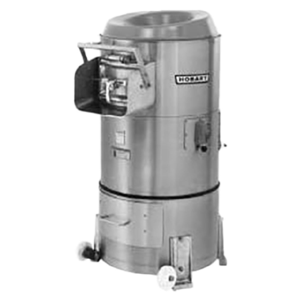 The Hobart 6460M-1 Vegetable Peeler is a versatile, mobile foodservice appliance designed for efficient peeling of large quantities of potatoes. Engineered with welded stainless steel construction, this commercial potato peeler features a V-belt drive system and a removable abrasive silicon carbide disc for simplified maintenance. Its design supports rapid processing, capable of peeling 50-60 pounds of potatoes within 1-3 minutes, making it suitable for mid-volume kitchen operations requiring consistent throughput and quick turnaround in vegetable preparation. With four cast aluminum legs and two heavy-duty casters, the equipment offers stability and mobility, ideal for catering, institutional kitchens, or widespread foodservice settings where efficiency and durability are critical.