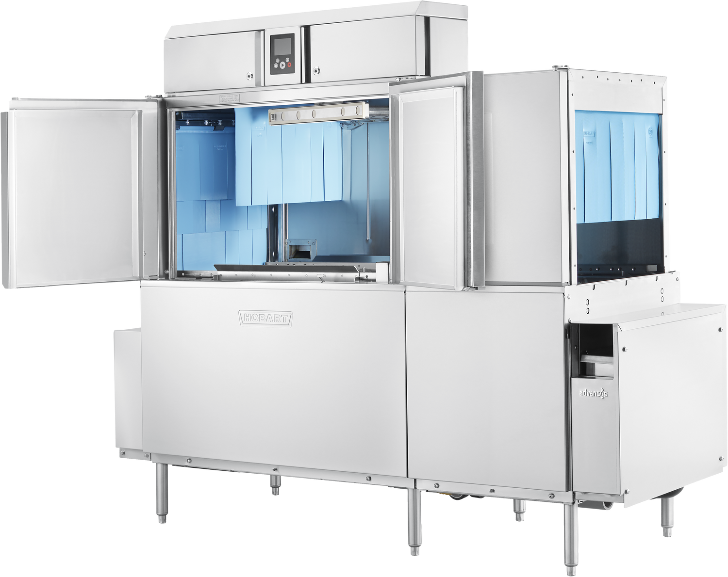 Hobart, CL66-ADV+BUILDUP, Conveyor Dishwasher, single tank with power scrapper, Automatic Soil Removal, Drain Water Energy Recovery with factory-installed drain water tempering kit, (202) racks/hour, .45 gallon/rack, Complete Delime with Booster Guard, Touch Screen Controls with diagnostics, troubleshooting, and SmartConnect App, capless wash arms, NSF Pot & Pan mode, pumped rinse, insulated hinged doors, cULus, NSF, ENERGY STAR®, Factory Startup - Free for installations within 100 miles (accessible by public roadway) of a Hobart Service Office during normal business hours with appropriate notice, Installation beyond 100 miles or those not accessible by public roadway will be quoted by Service.