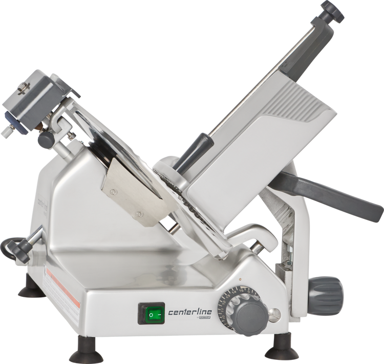 A commercial food slicer is a specialized kitchen equipment designed for high-volume slicing of meats, cheeses, produce, and other food items. It offers precise, uniform cuts essential for deli operations, restaurant prep, and catering services. The Hobart EDGE12-11 Centerline Series Slicer is a manual, moderate-duty unit optimized for consistent performance in foodservice settings, installed in deli counters, or prep stations, making it ideal for mid-volume establishments needing reliable slicing capabilities.