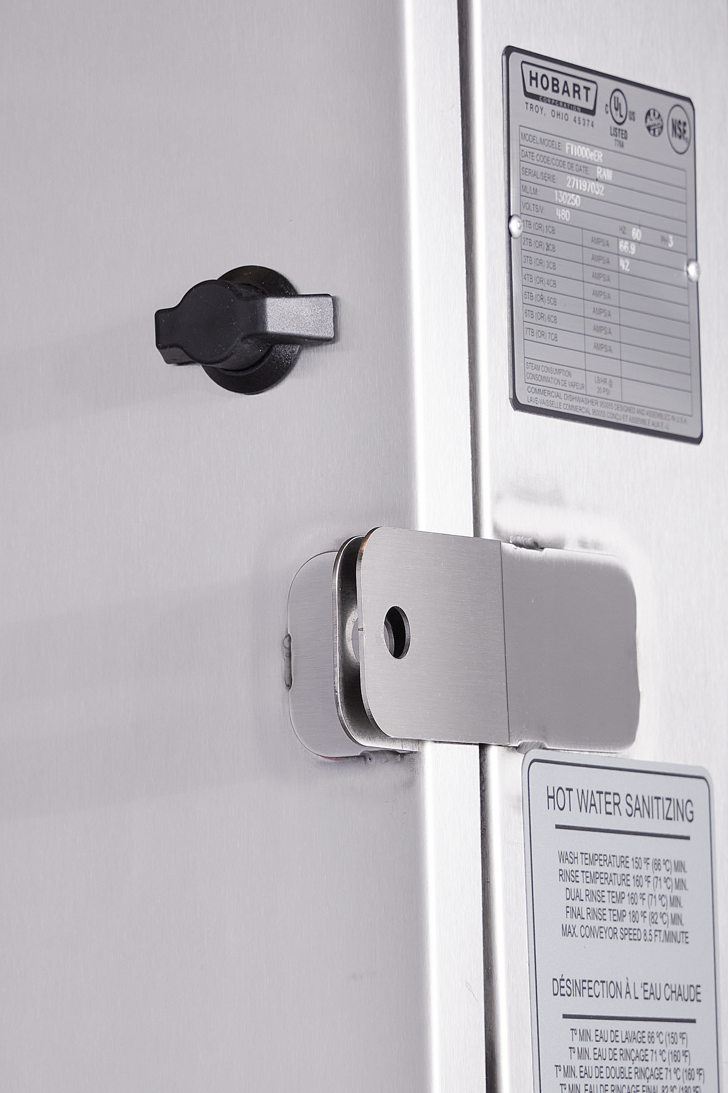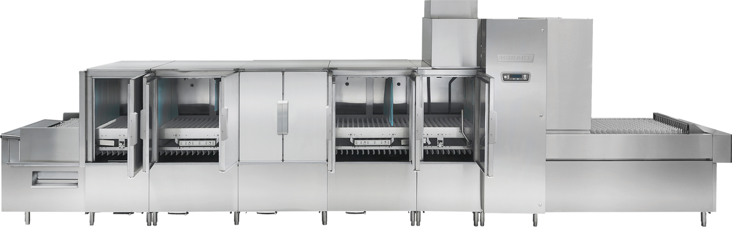 The Hobart FT1000E+ENERGY@CF Low Energy Series Energy Recovery Model Flight Type Dish Machine is a commercial-grade dishwashing system designed for high efficiency in foodservice operations. This flight type dish machine features advanced energy recovery capabilities, with a final rinse water consumption of 58 gallons per hour, optimized for moderate-volume warewashing environments. Equipped with dual rinse cycles, hinged and insulated doors, and sliding wash arms without caps, it ensures thorough cleaning while minimizing downtime. Its microprocessor controls, complete deliming system with notification, auto dispensing, booster guard, and automatic soil removal enhance operational workflow. Technical specifications include a model number FT1000E+ENERGY@CF, NSF and cULus certification, and ENERGY STAR® compliance, making it a reliable choice for commercial kitchens seeking energy-efficient, high-throughput dishwashing solutions.