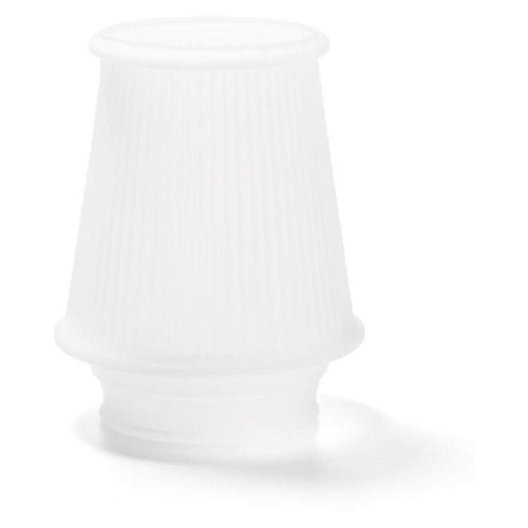 A commercial candle lamp globe is a glass enclosure designed for decorative lighting in hospitality environments, such as restaurants and catering. It features precise dimensions and fitment to ensure compatibility with standard candle lamp fittings. Typically made from heat-resistant glass with finishes that enhance aesthetics and reduce glare, such globes are used to contain flames and protect wicks against drafts. The Hollowick 38SE Fitter Globe, with its ribbed texture and satin etch surface, exemplifies this product category, supporting safe, attractive lighting in high-volume foodservice operations and upscale dining settings.