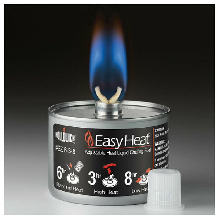 The Hollowick EZ 6-3-8 chafing dish fuel delivers adjustable, odorless heat optimized for commercial catering and buffet service. Its wick-based construction ensures reliable burn times, while the durable, reusable can withstand frequent refilling and handling in high-volume foodservice environments. Designed for ease of use, the stay-cool can facilitates safe handling during operation, promoting workflow efficiency in busy kitchens and catering operations.