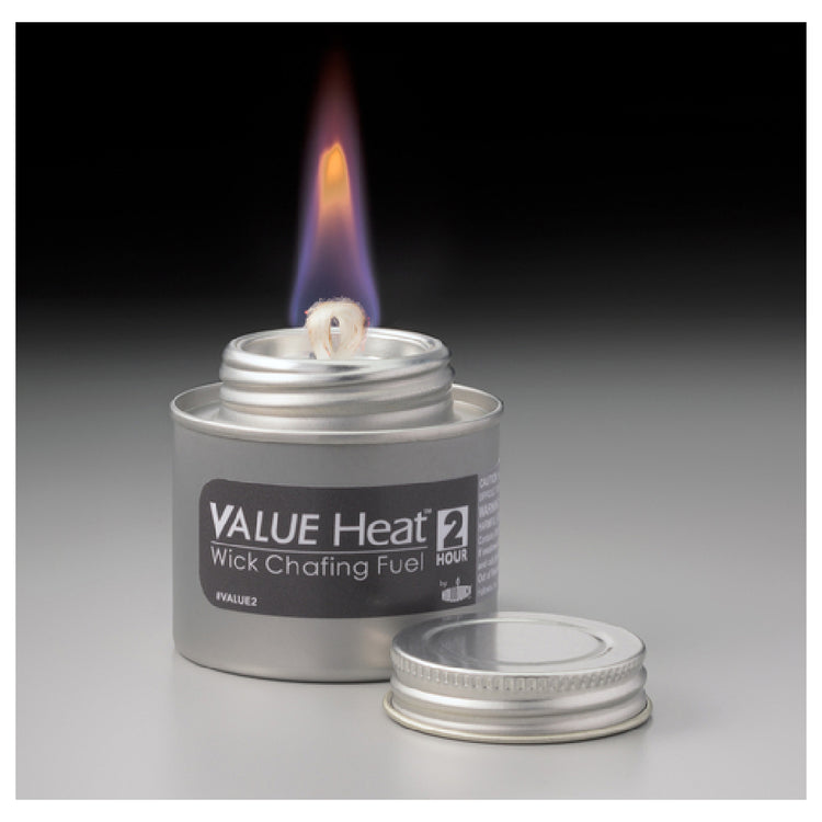 The Hollowick VALUE2 Value Heat™ Wick Chafing Fuel is a commercial-grade heating source designed for catering, buffet service, and event venues. Featuring a sturdy 2-1/2-inch diameter can and a height of 2-2/5 inches, this wick chafing fuel provides consistent 2-hour burn times with an odorless operation. Constructed for durability, it employs a high-quality wick combustion system, ensuring reliable performance in professional hospitality environments. Its optimized size and stay-cool can make it suitable for numerous chafing dish setups, facilitating efficient meal service without compromising safety or operational efficiency.